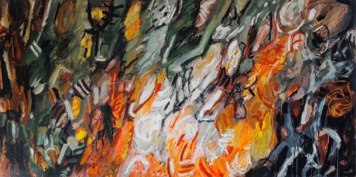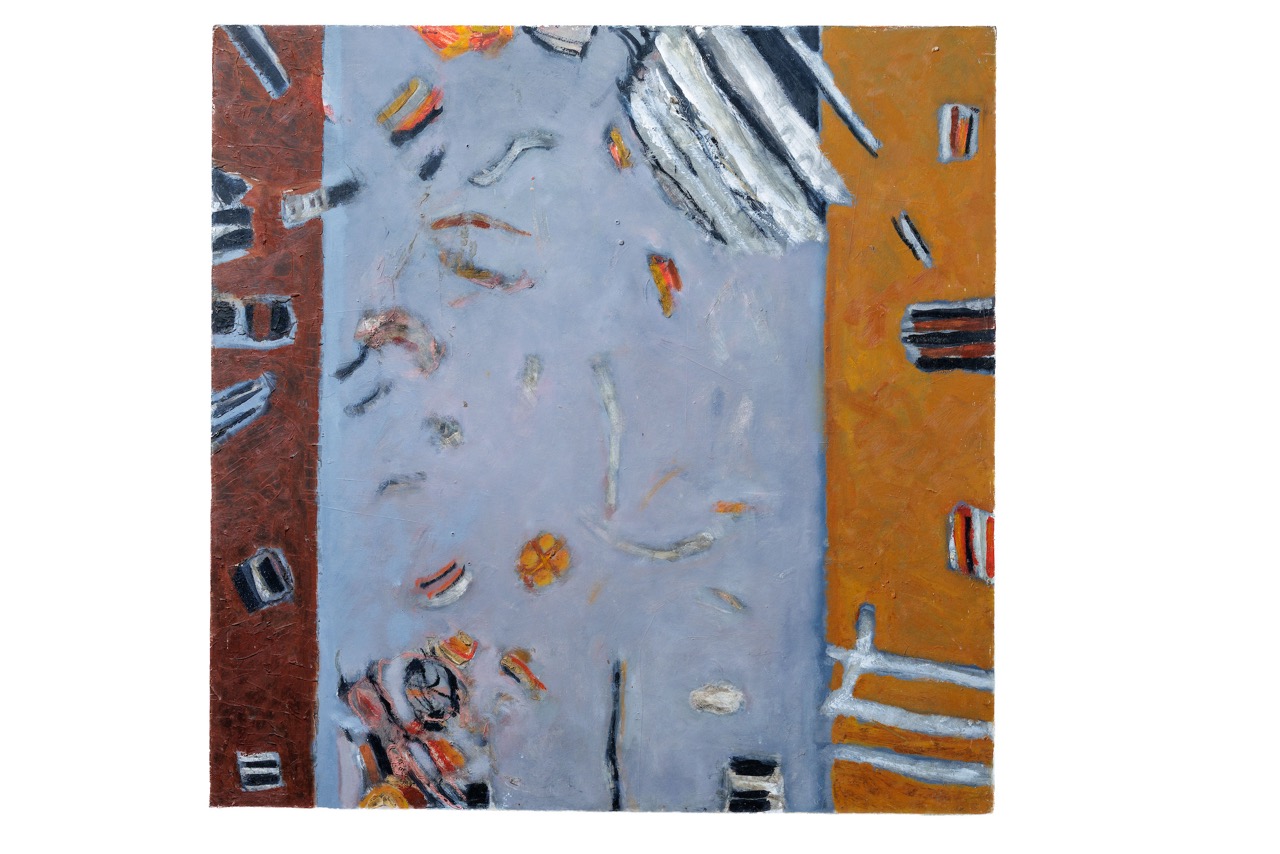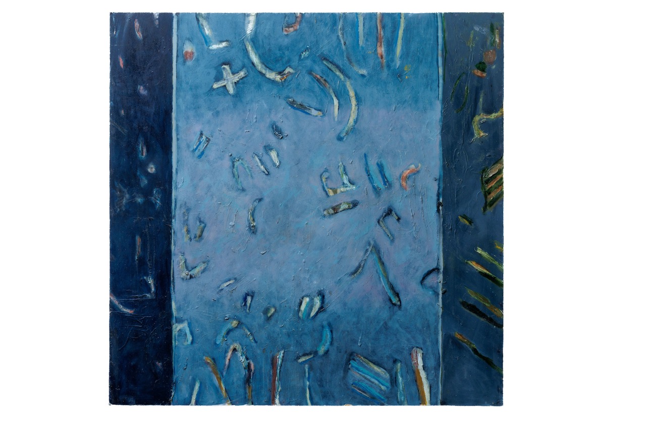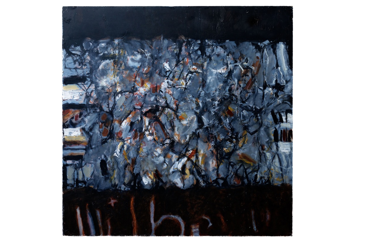 Each painting is an organisation of varying speeds and intensities — a pragmatic practice of abstract mixing and rearranging of data. At some points the paint is heavily applied and intensely visceral; at other times it is lucidly translucent, creating different temperatures and emotional qualities within a single picture plane. In Winter Pond, an opalescent painting of great beauty, centrifugal graphic nets radiating outwards add to the sense of freshness and spontaneity these paintings engender. In Embers I and Embers II, the glowing colours and intricate patterns that lurk in the charcoal depths of burning embers, generated by winter bonfires, permeate the canvases.