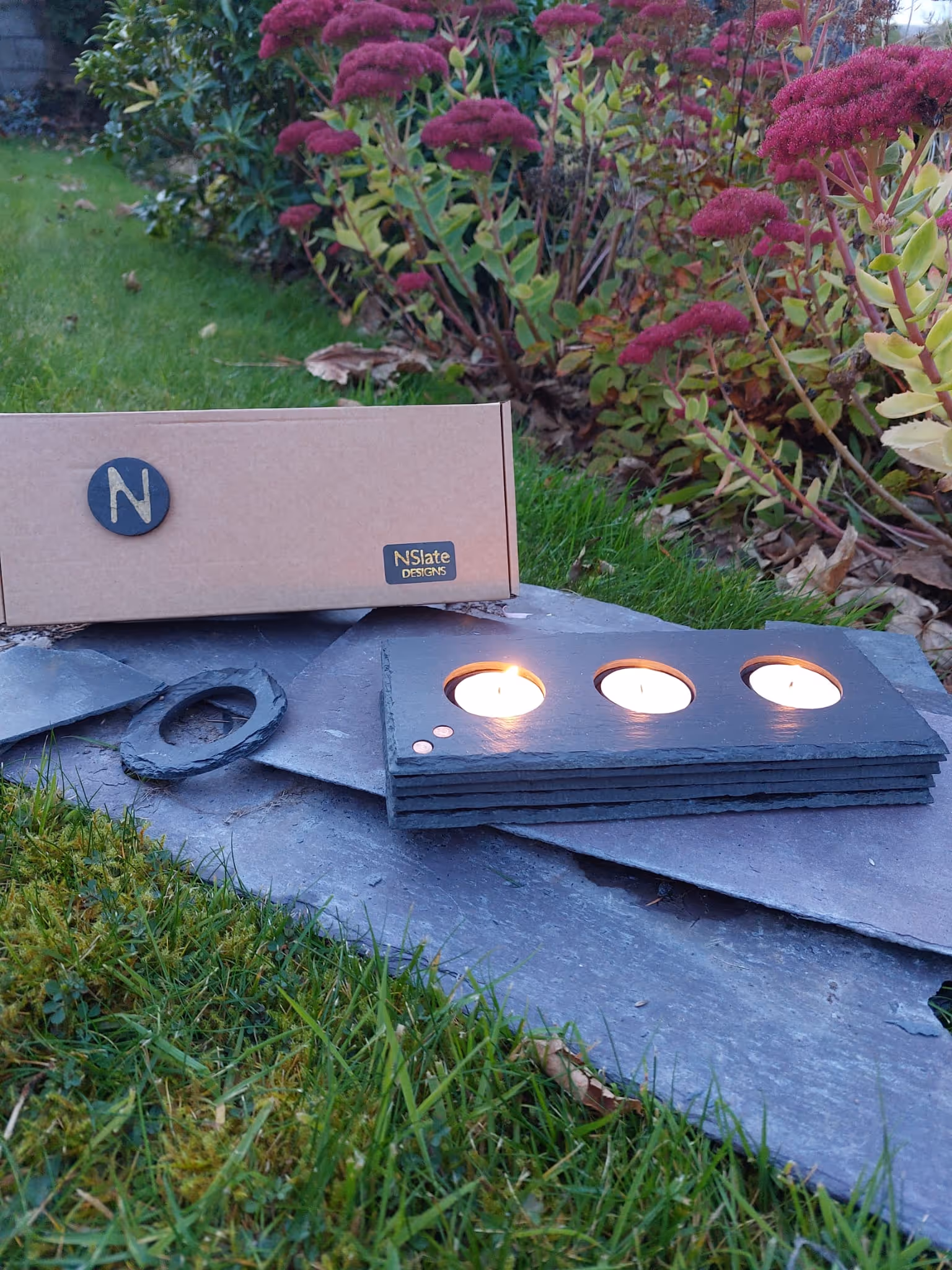Reclaimed natural slate is cut and crafted using traditional methods to create unique pieces with copper detail. The range includes tableware - placemats, coasters, cheeseboards and pizza platters. Also available are decorative pieces for the home - plants holders and a variety of candle and T- light holders.